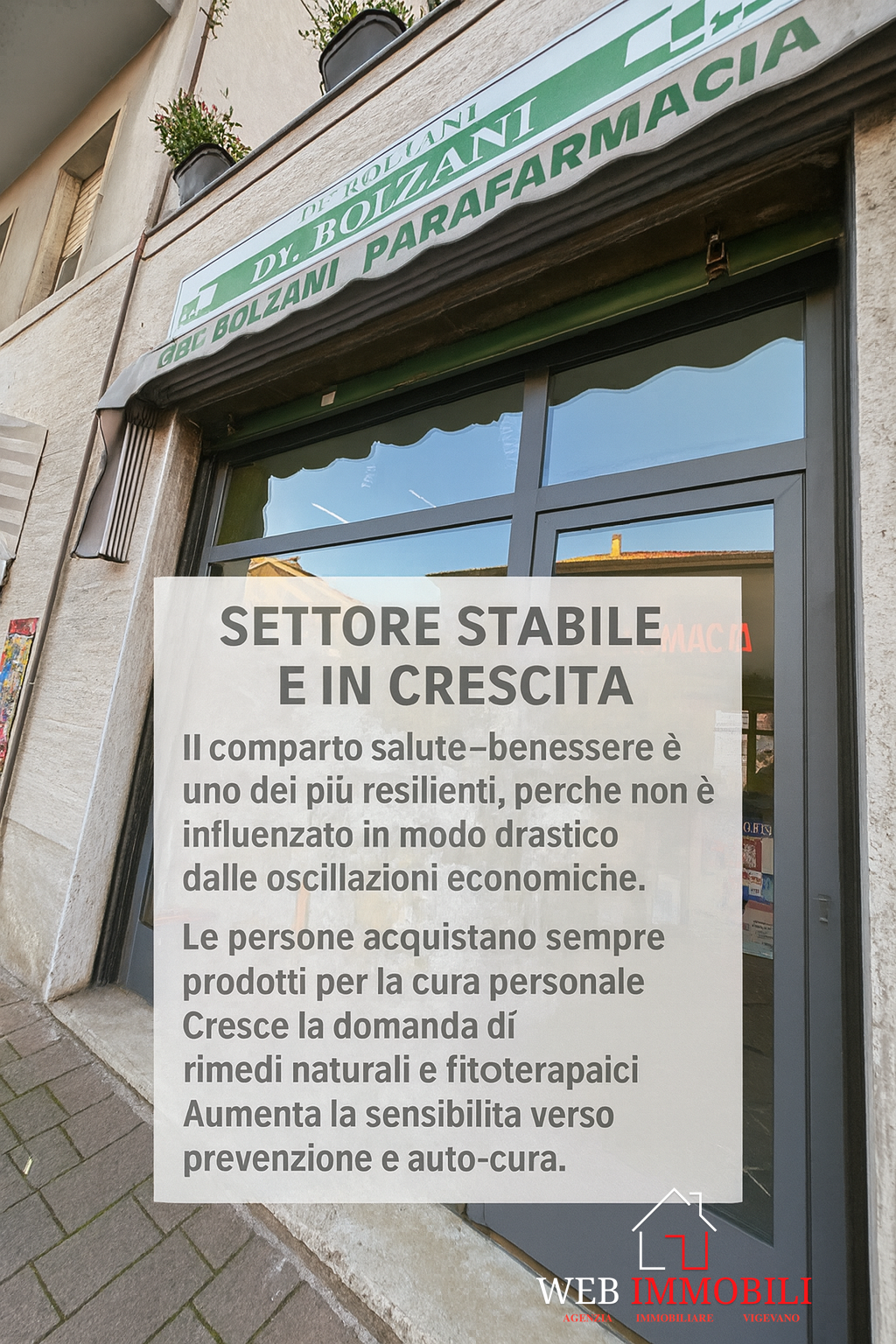 WEB IMMOBILI propone in vendita ATTIVITA’ di parafarmacia–erboristeria avviata, situata in posizione strategica e con clientela fidelizzata.